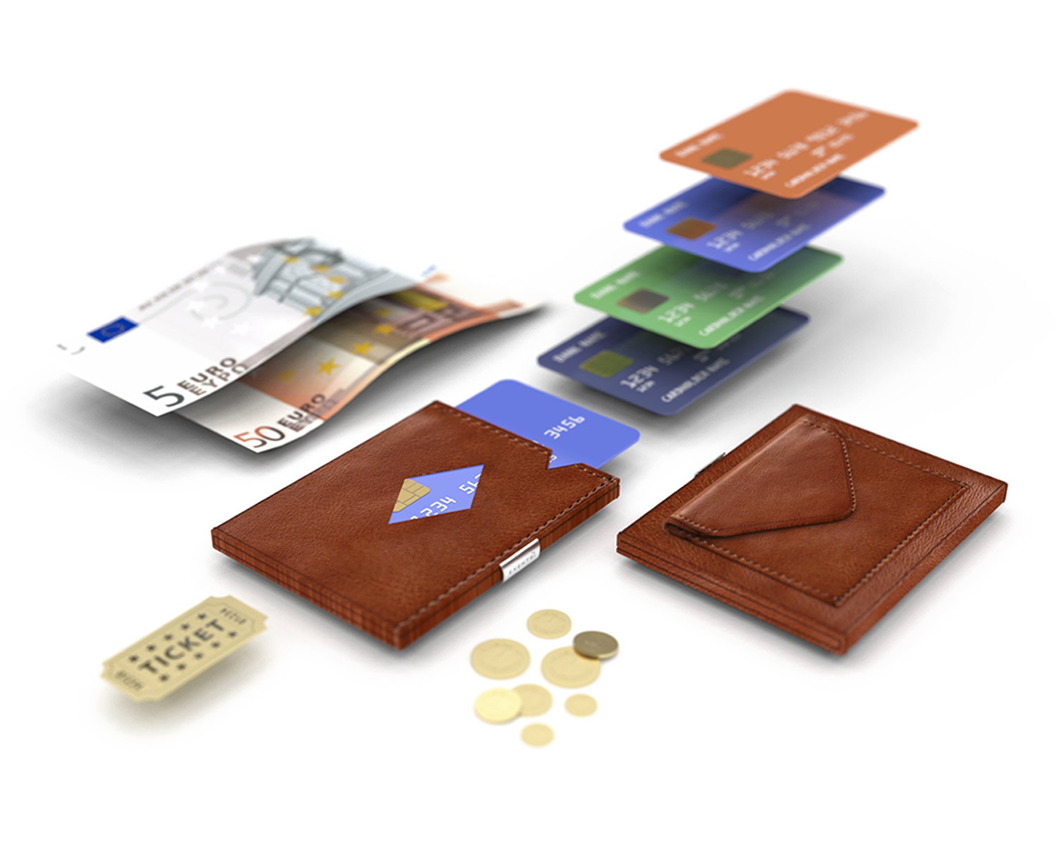 Exentri® Walletist saate oma enimkasutatavad kaardid kiiresti kätte. Rahakotil on kuus kaardivahet ja iga seesmine vahe mahutab mitu kaarti. Ruumi on piisavalt ka sularaha, kviitungite ja piletite jaoks. Ühe kõige olulisema kaardi saate kiiresti kätte vaid pöidlaliigutusega.